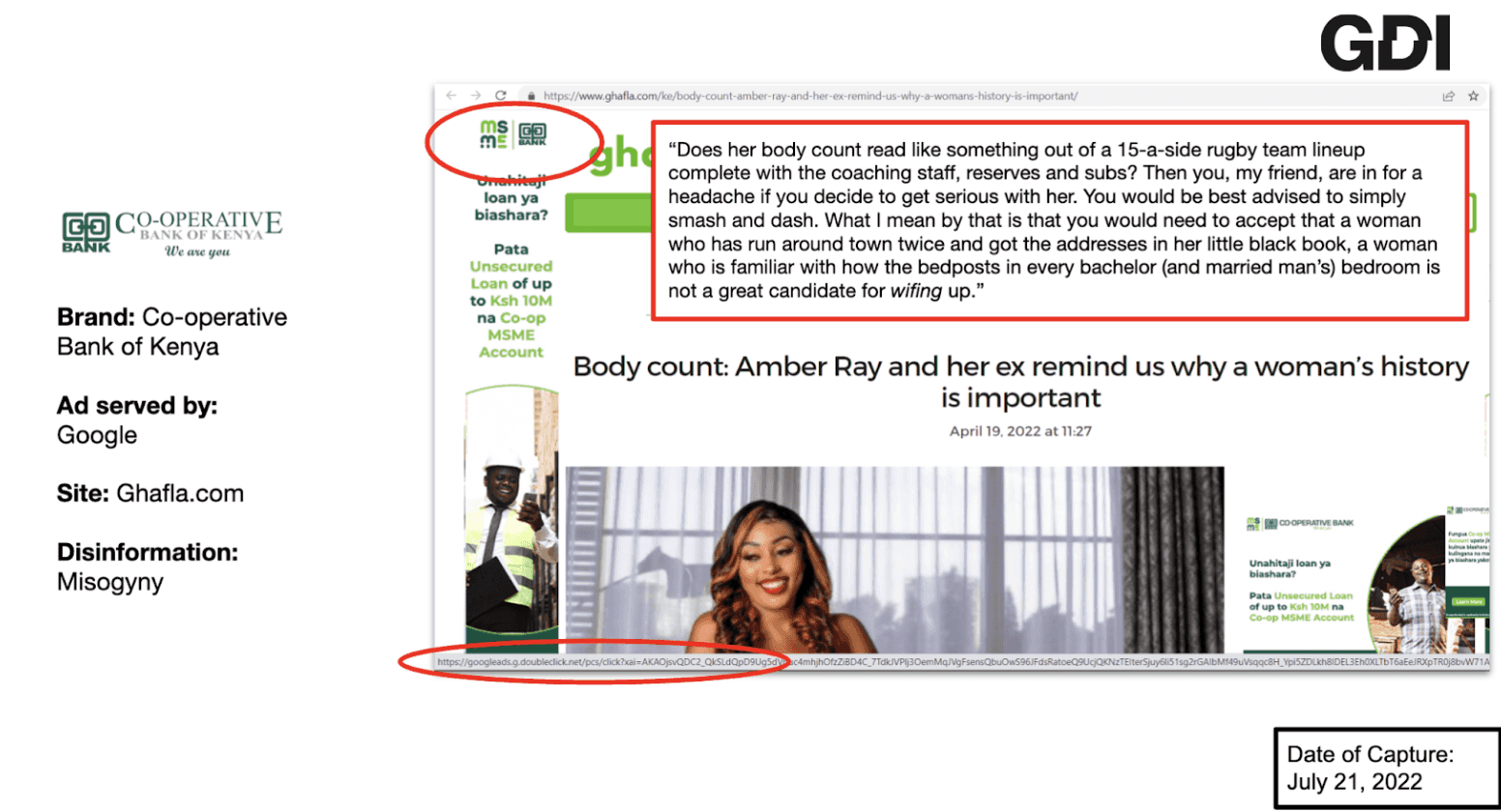 During Kenya’s 2022 General Election disinformation was used to undermine women’s capacity to make informed political decisions. It also undermined their roles in public institutions, including running for political office. The spread of these narratives on platforms such as TikTok and the open web inflamed political tensions, which stoked fears of election-related violence. This attempt to dissuade women from running for office and participating in the electoral process has disturbing effects on civic integrity and lays the ground to exclude women from the basic right to self-governance. Below is just one example of this phenomenon.